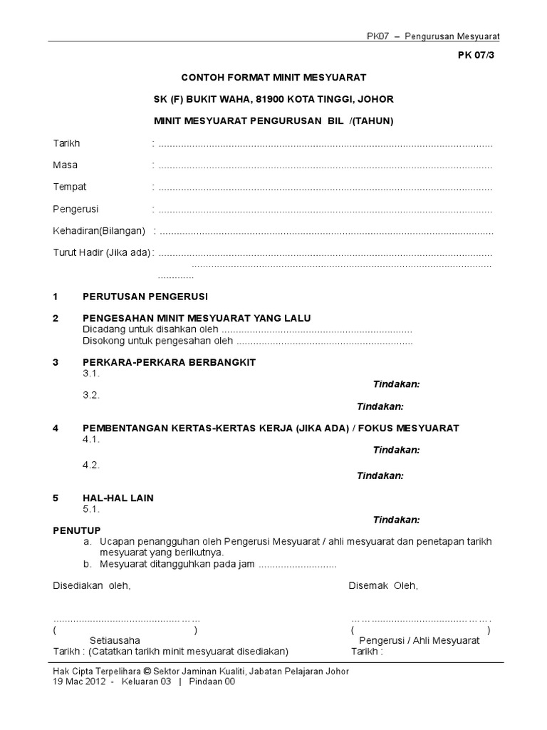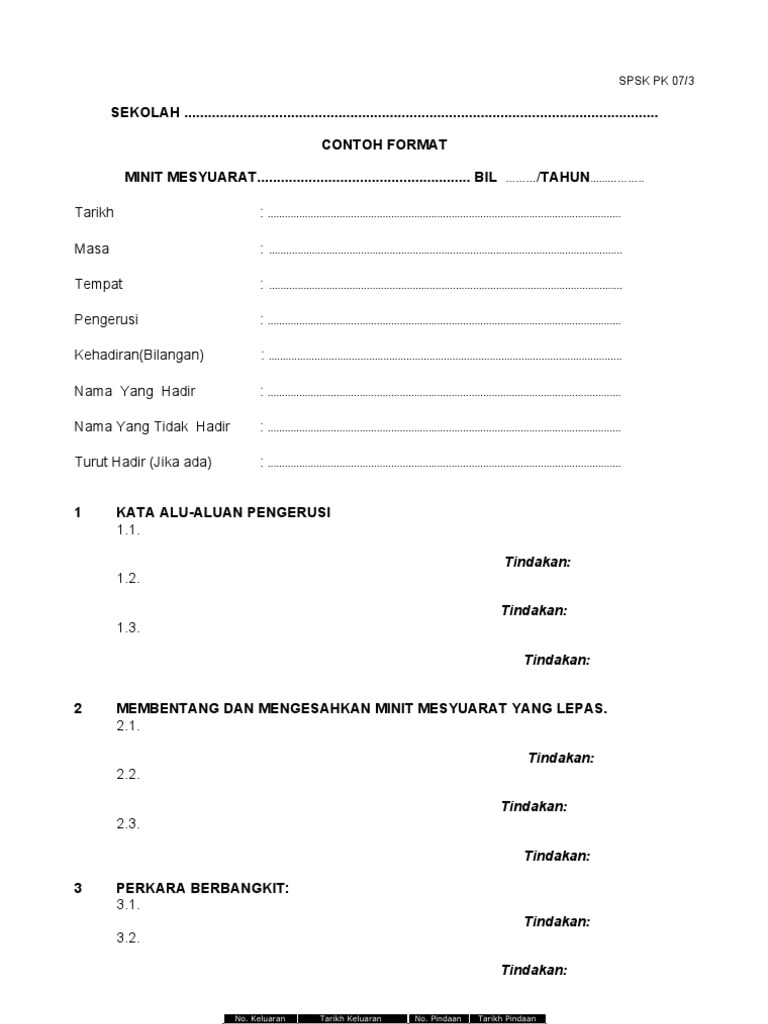 Borang Pk 07 3 Contoh Format Minit Mesyuarat Pdf